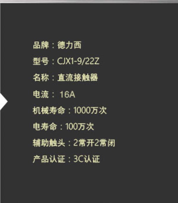 DELIXI德力西直流接触器24V CJX1-1622Z 24/48/220V 额定16A 德力西直流接触器型号