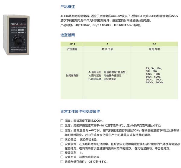 人民电器集团people JS14A-30S 60S 120S 180S晶体管时间继电器断电控制