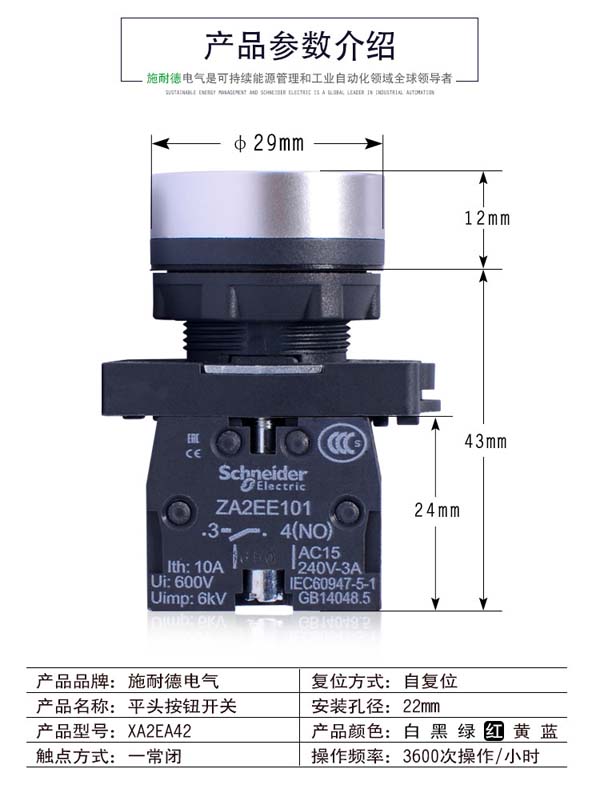 施耐德电气 Schneide rXA2 绿色 塑料 按钮 XA2EA31 平头按钮