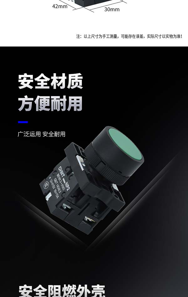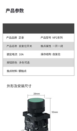 正泰CHNT NP2-EA31自复位平头按钮一常开一常闭NP2-EA31