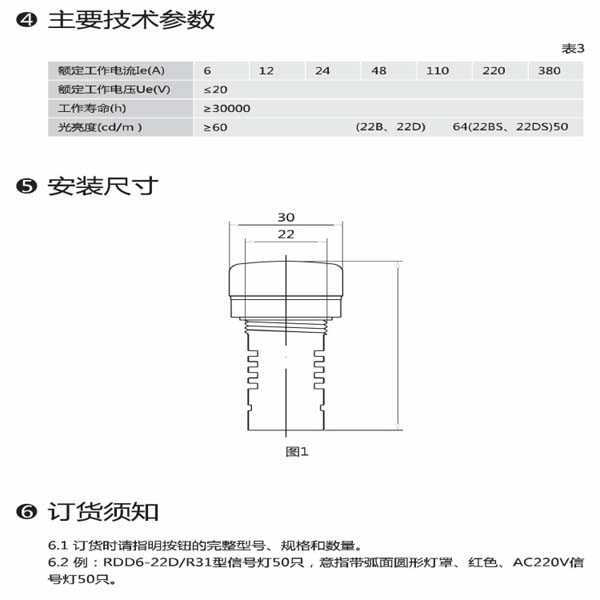 人民电器指示灯RDD6-22DS/31 DC220V红/黄/ 绿/白