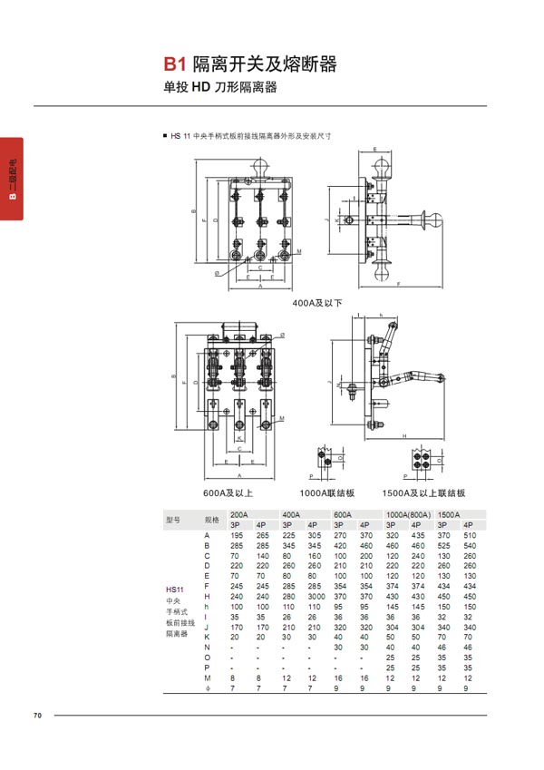 德力西DELIXI HD13-1000/31系列刀开关3P 闸刀 隔离开关 1000A