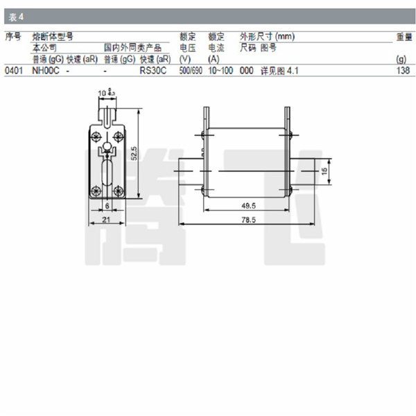 茗熔 NH00C gG 500V/100A 低压熔断器 (计价单位:件)