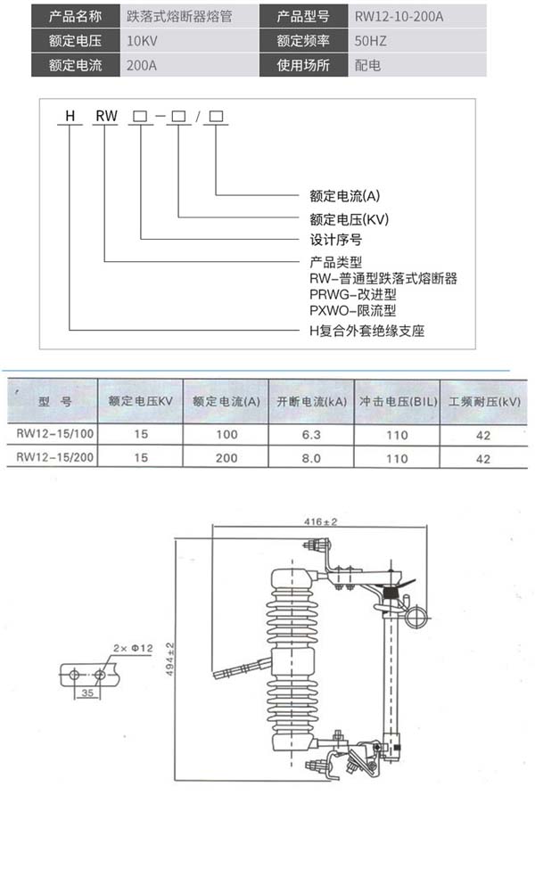 陉阳驿RW7-200A户外跌落式熔断器令克开关12KV