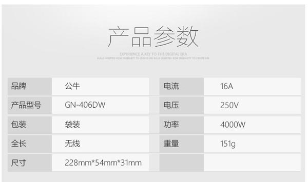 公牛(BULL)大功率电器16A空调插座插线板插排排插接线板 3位无线总控GN-406D(需自行接线和插头)