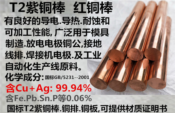 T2紫铜棒直径10/20/30/40/50/60/80/100
