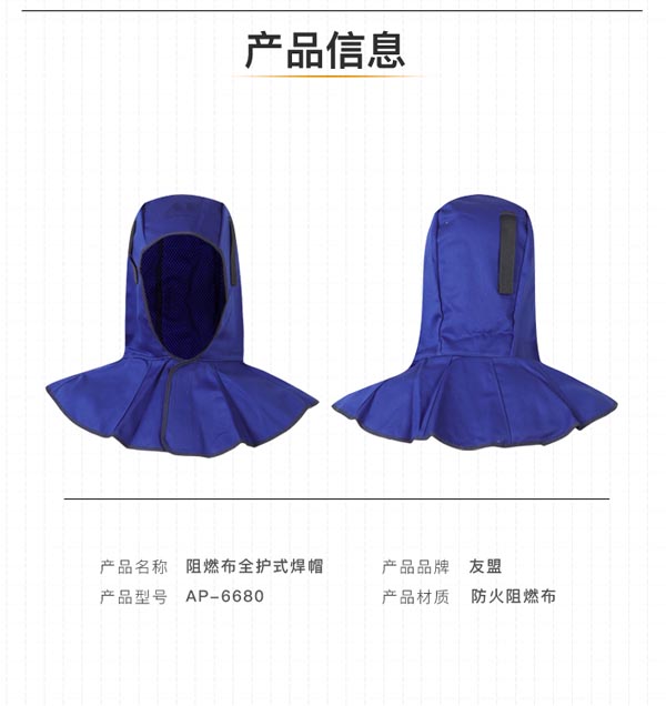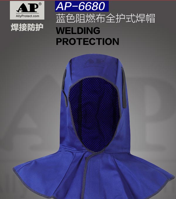 友盟 (AP)焊接阻燃头罩 AP-6680 蓝色阻燃布全护式焊帽
