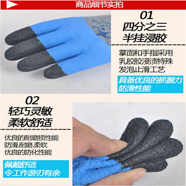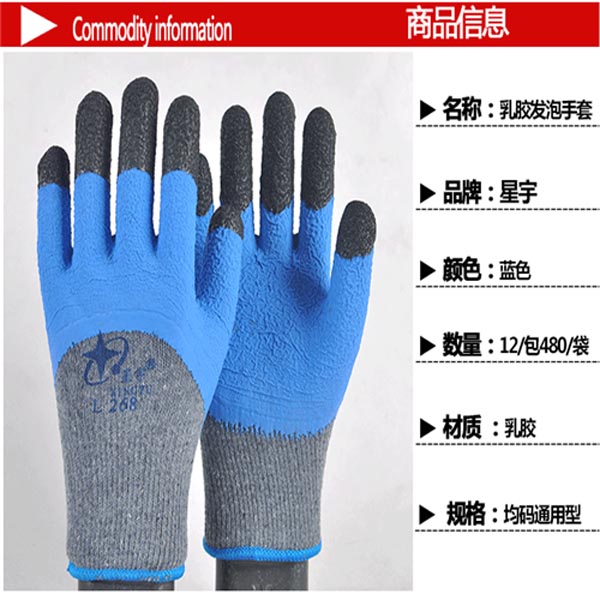 星宇 XINGYU 线手套 L268 起泡胶手套蓝色浸胶挂胶耐磨防滑保暖乳胶发泡劳保手套12副