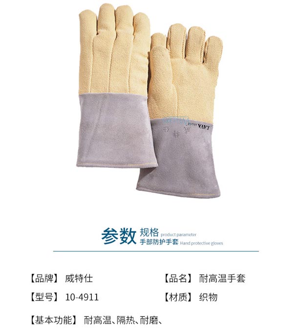 威特仕/WELDAS 织物五指款耐极高温手套330度持续工作538度间断工作 10-4911 1副