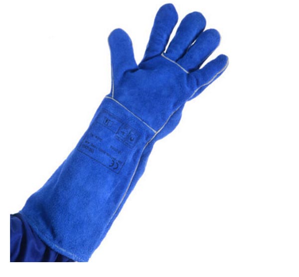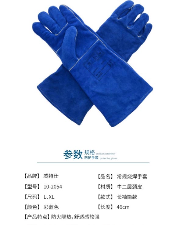 威特仕/WELDAS 彩蓝色长袖款电焊烧焊手套加长袖筒46cm防火耐磨隔热 1副 10-2054