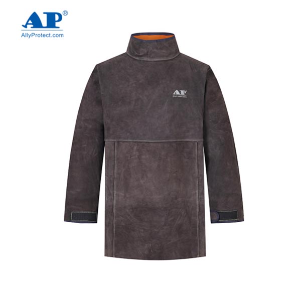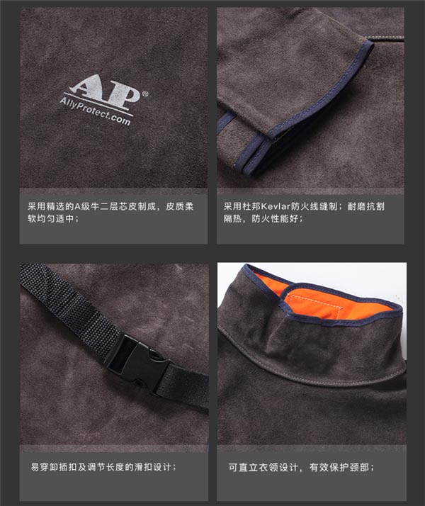 友盟(AP)围裙 AP-8002 炭咖色皮护胸带领长袖围裙电焊工作服 L-XL码 1条