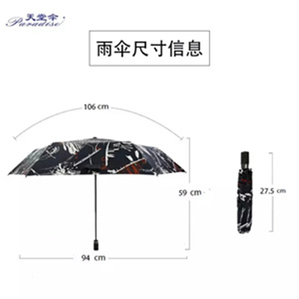 (358499)天堂 1833436E 53cm/6k 森林派对黑胶伞 颜色随机(单位:把)