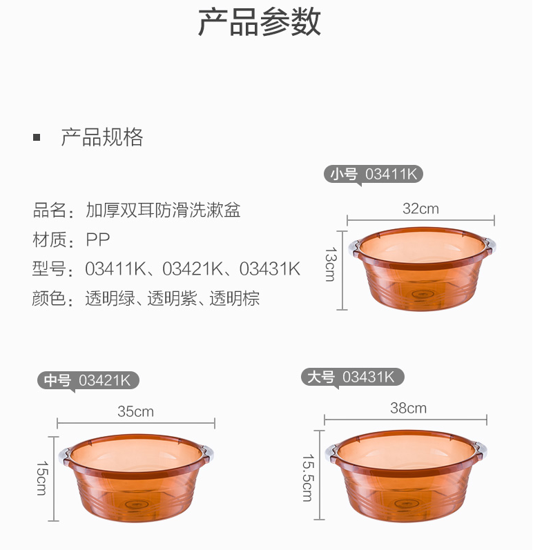 茶花 盆 03411K 32CM 大号把手加厚脸盆家用成人塑料透明洗衣盆婴儿洗脸盆学生儿童 1个
