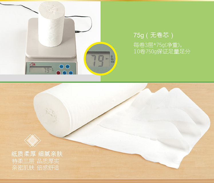 心相印 卫生纸无芯卷 LR910 纸优选3层750克10卷家用纸巾卫生纸厕纸手纸 1提