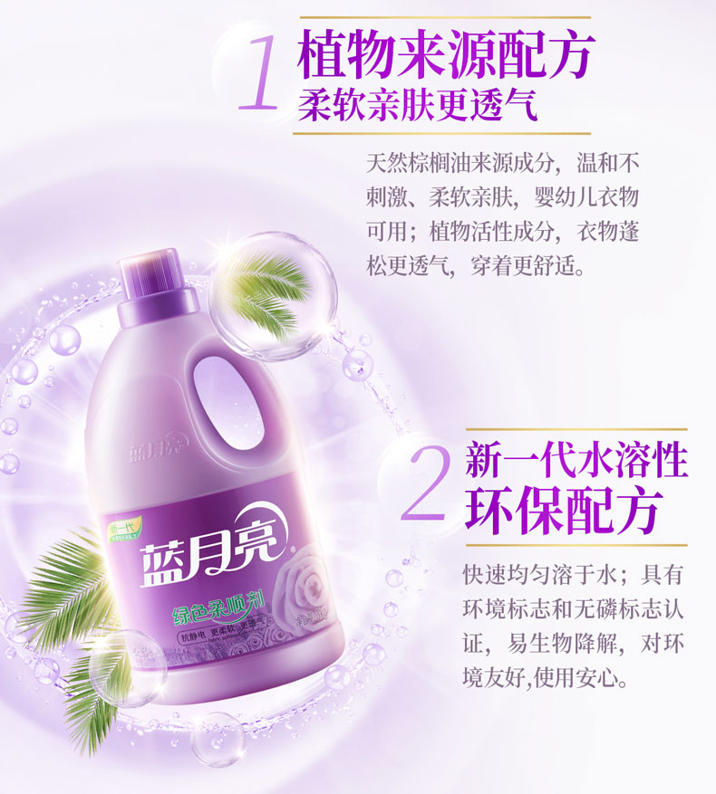 蓝月亮 柔顺剂 玉铃兰绿色柔顺剂 蓝月亮绿色柔顺剂2kg 衣物护理柔软透气防静电玉铃兰香
