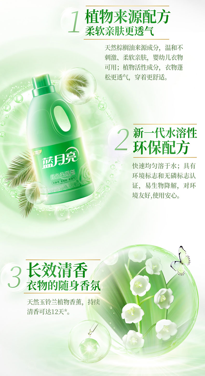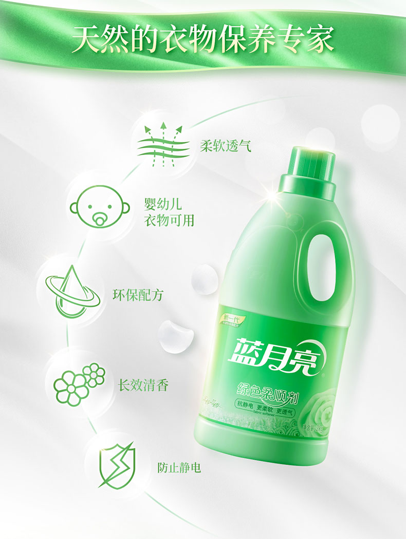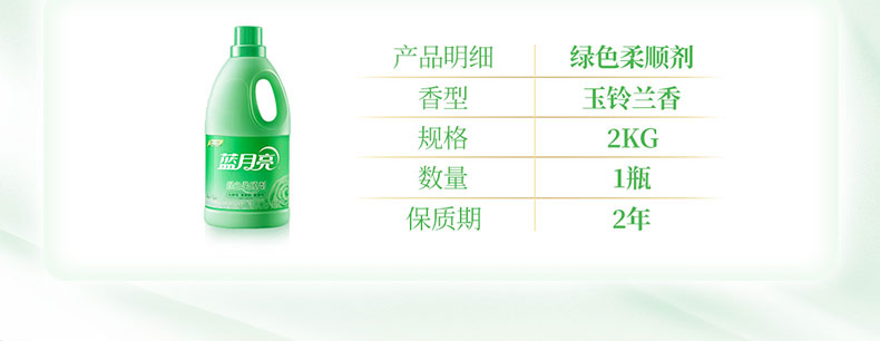 蓝月亮 柔顺剂 玉铃兰绿色柔顺剂 蓝月亮绿色柔顺剂2kg 衣物护理柔软透气防静电玉铃兰香