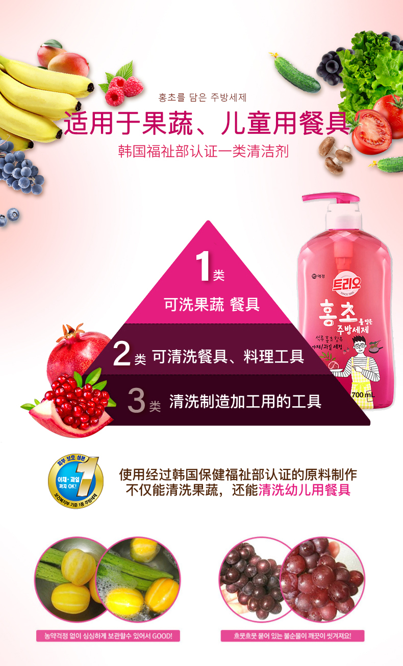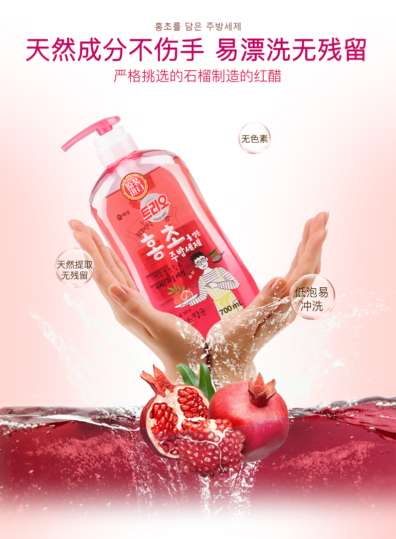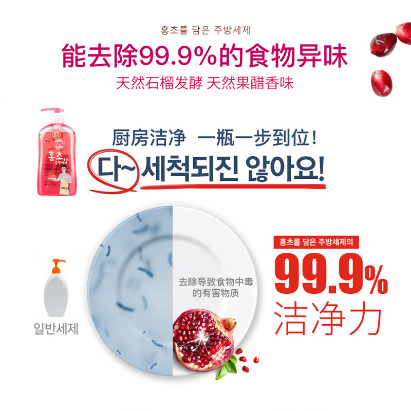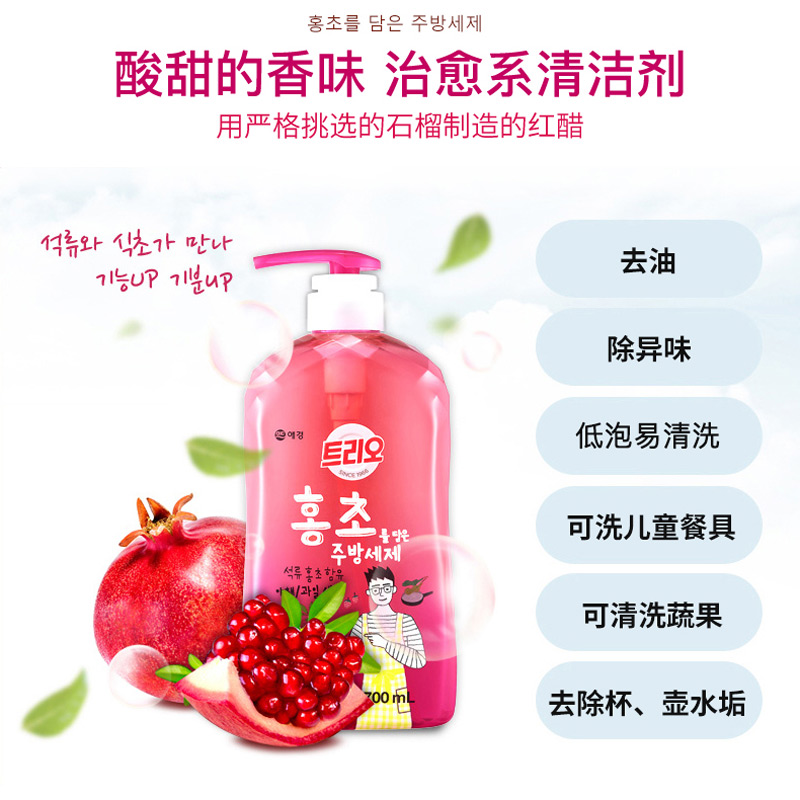 爱敬 洗洁精 韩国原装进口 石榴醋洗洁精700ml餐具果蔬谷物浓缩清洁洗碗液