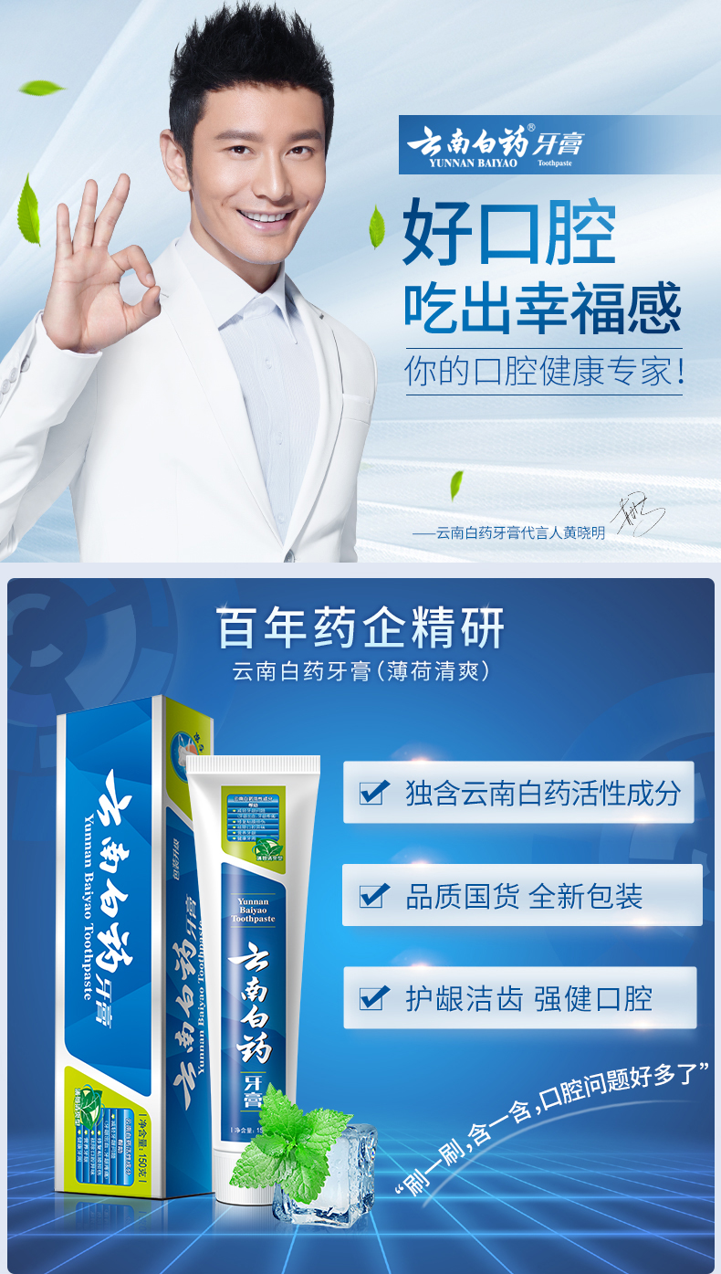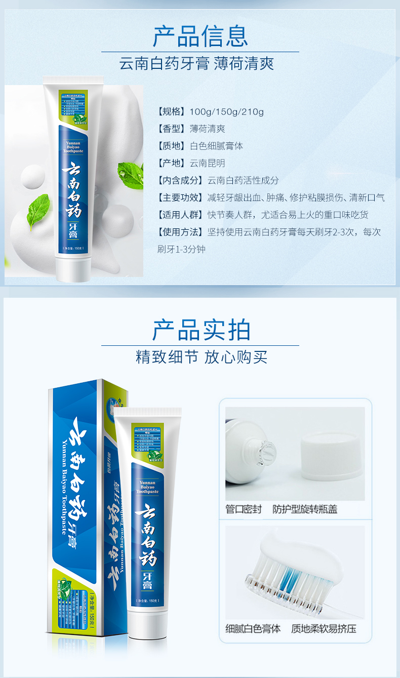 云南白药 牙膏 薄荷清爽型牙膏100g牙龈出血肿痛口气清新去口臭异味