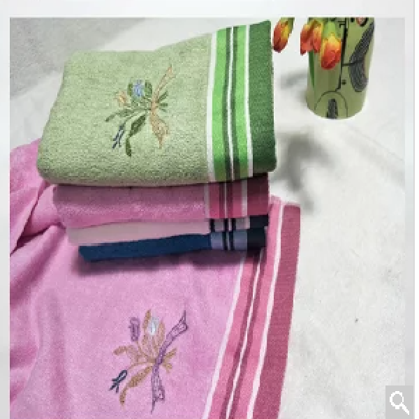 咏竹缘 竹纤维绣花大毛巾+浴巾 毛巾+浴巾 毛巾34*76cm.浴巾70*140cm一盒3条