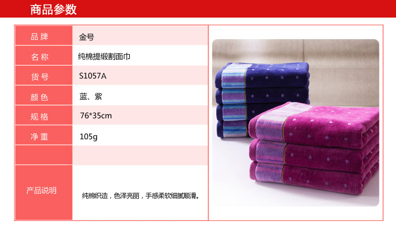 三利 S903 34*74cm 100g 甄柔面巾(计价单位:条)