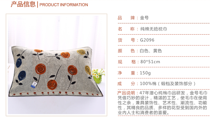 金号 枕巾 G2096 纯棉一对装成人单人老式枕巾盖枕头上的毛巾式全棉 1对