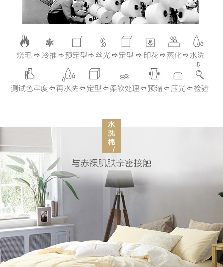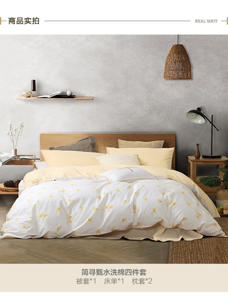 水星家纺 全棉四件套 AY572D04 水洗棉四件套宿舍1.5全棉床单被套床上用品 1套