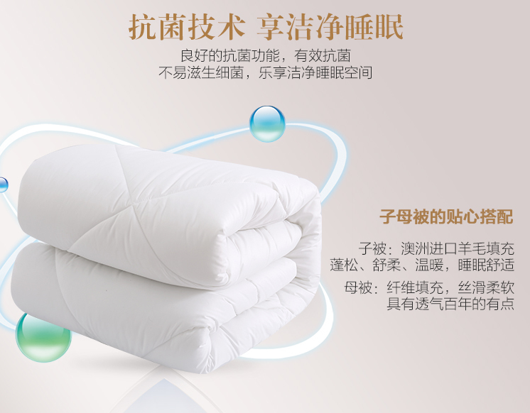 水星家纺 被芯 QW503U02 澳洲羊毛柔丝抗菌二合一被升级子母被保暖秋冬被芯被子 1条