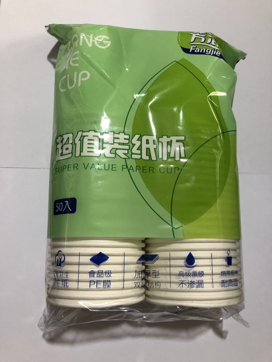 芳洁 一次性纸杯FJ-0004 加厚一次性纸杯环保家用商务办公茶水杯子50只纸杯