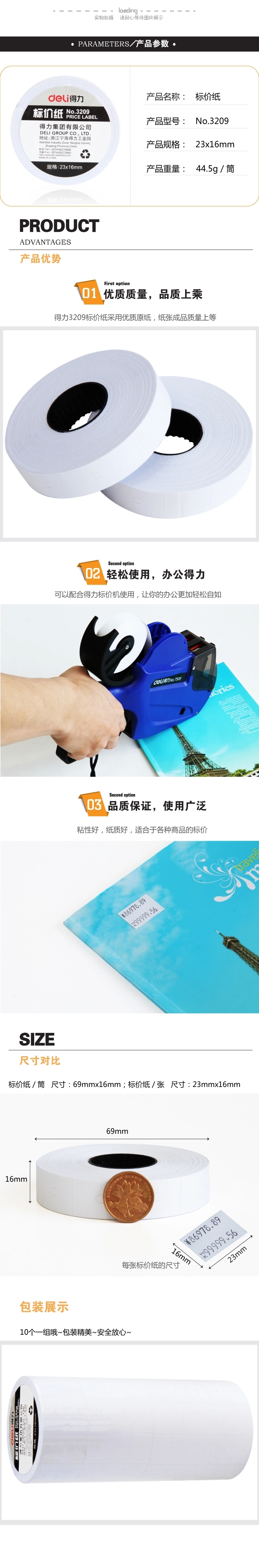 得力办公3209标价纸 23×16mm 商品标签 适合双排标价机