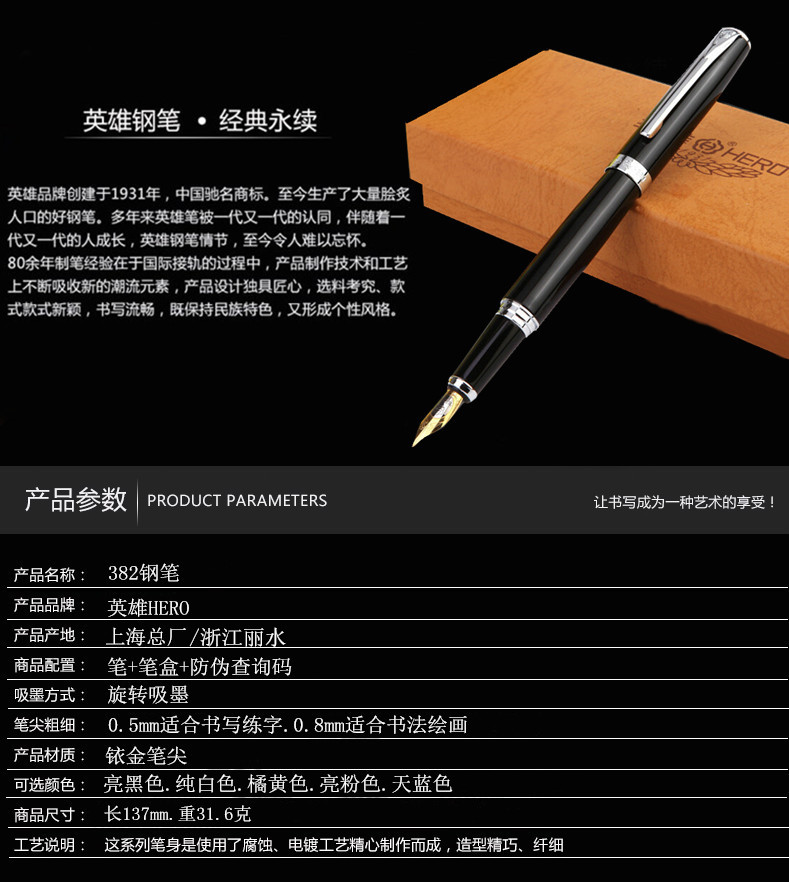 英雄钢笔 382 铱金笔 礼品学生练字墨水美工钢笔