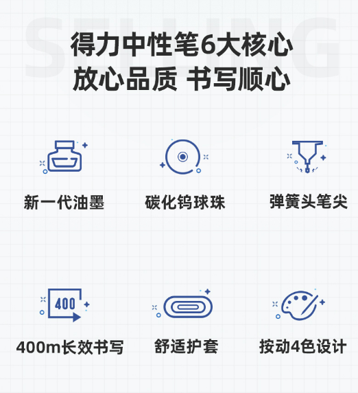 笔头类型: 子弹头型适用墨水类型: 水性墨水