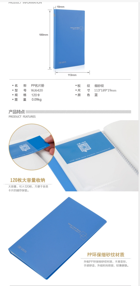 广博 120卡竖款PP名片册 办公商务名片夹名片簿名片本 WJ6420