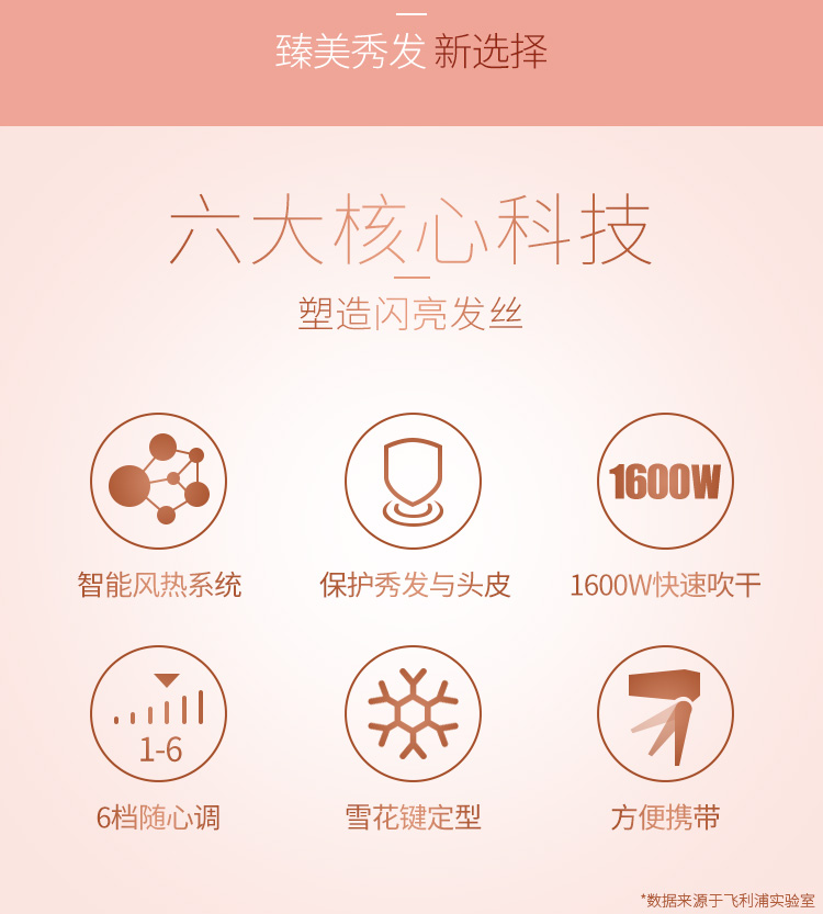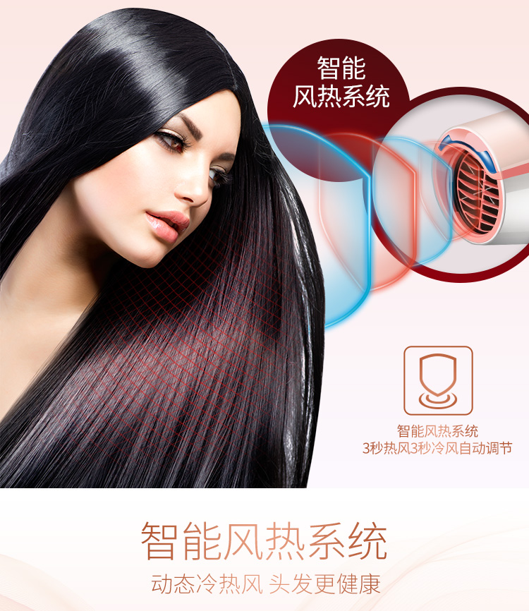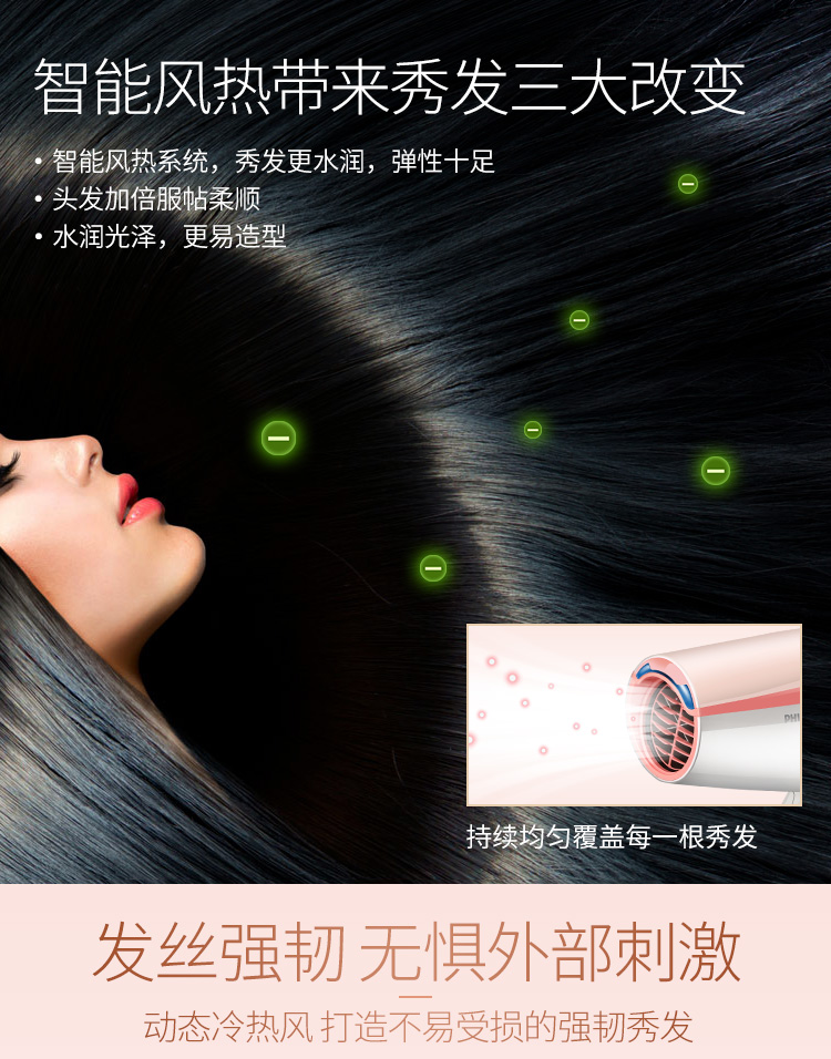 飞利浦(PHILIPS)电吹风机 家用大功率恒温快干冷热风吹风筒 BHC010/75