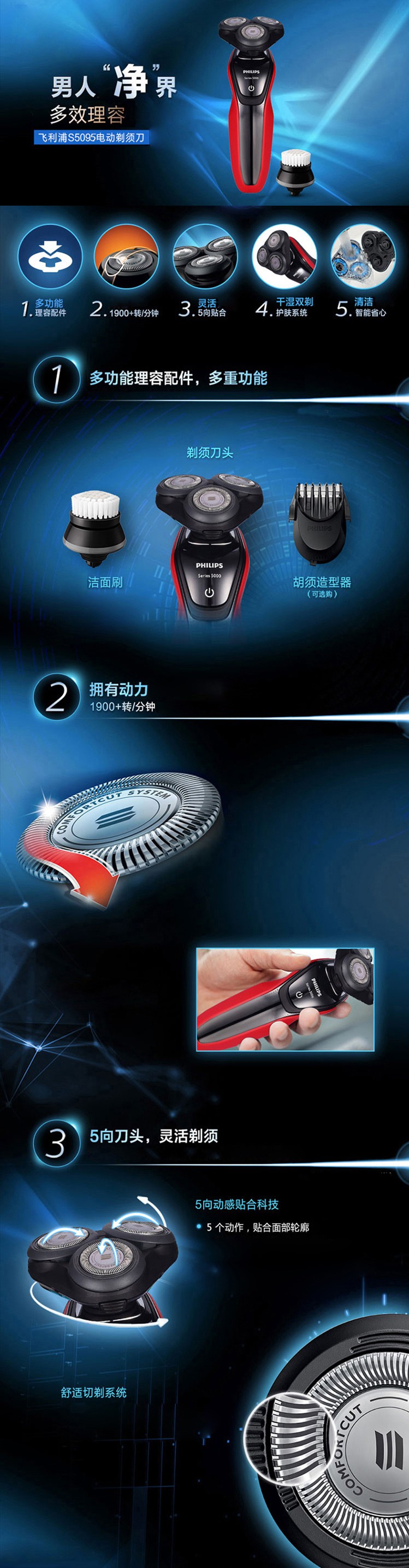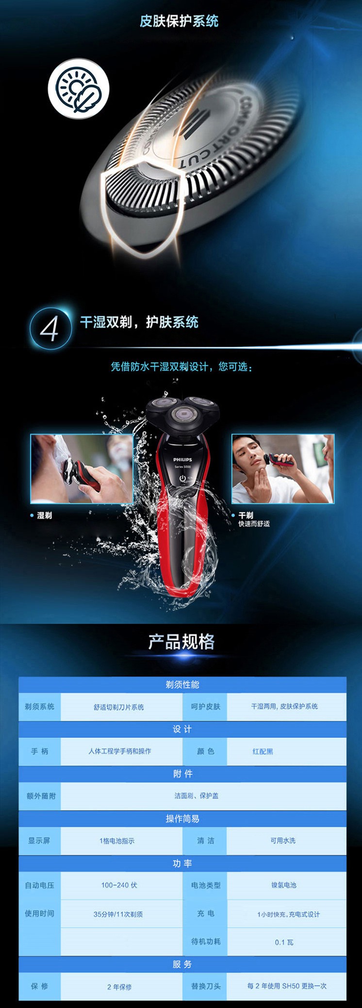 飞利浦SP9880男士无线充电式剃须刀电动刮胡刀原装进口胡须刀正品