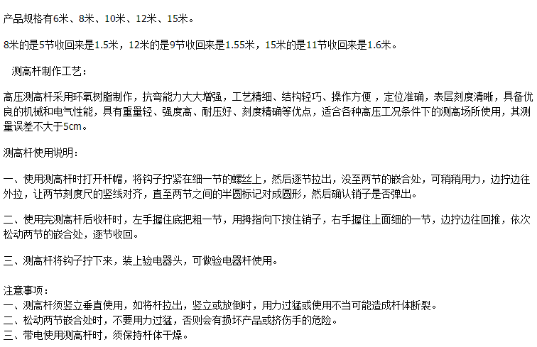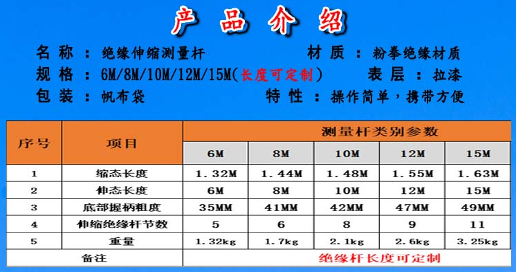 测量杆绝缘测高杆6米8M轻型电力测量杆高压环氧树脂伸缩式测高杆测量杆10米12米15米测距杆 特惠 6m