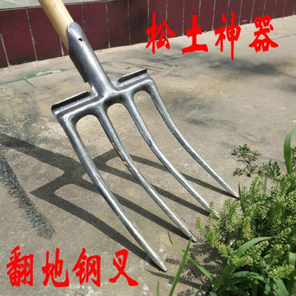 长柄翻地铁钢叉农用工具松种菜开荒土挖锄头叉子齿四铁农具牛粪铲
