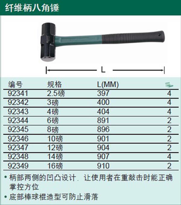 世达 Sata 纤维柄八角方头小铁锤多功能锤子锤铺地砖92341-92345