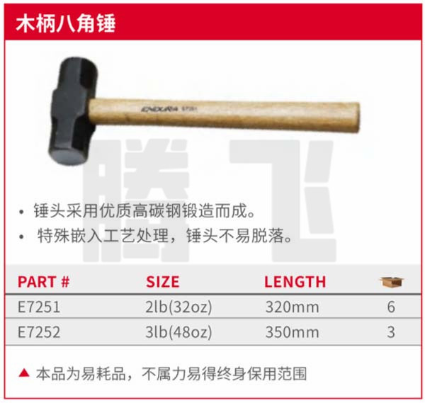 力易得(ENDURA) E7252 木柄八角锤3LB (计价单位:只)