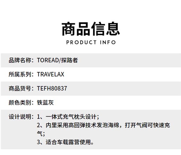 探路者 Toread 充气垫 TEFH80837 春夏户外男/女通款一体式充气垫 1个