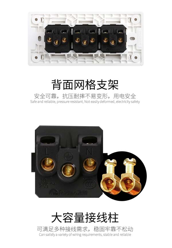 飞雕FEIDIAO 118插座开关家用型6六孔插座暗装墙壁五孔插电源10孔插座 暗装白色118B30双插