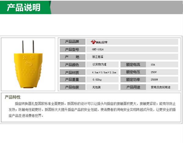 公牛(BULL) GNT-10L4 1极插头220v (计价单位:个)