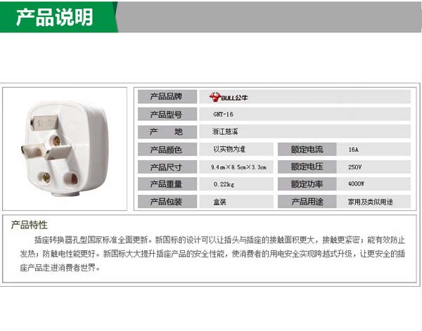 公牛(BULL) GNT-10S2 3极插头220v (计价单位:个)