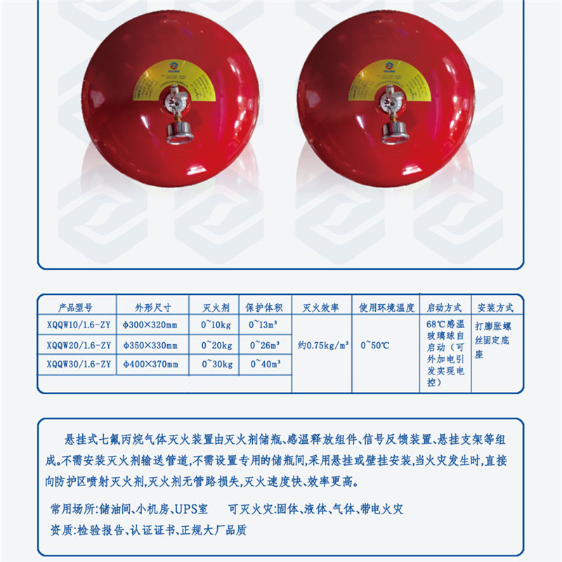 欧伦泰XQQW12/1.6悬挂式七氟丙烷灭火装置
