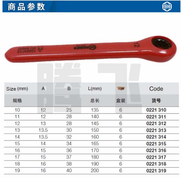 BOOHER宝合 0221310 浸塑型绝缘梅花棘轮扳手10mm/11mm/12mm/13mm/14mm/15mm/16mm/17mm/18mm/19mm