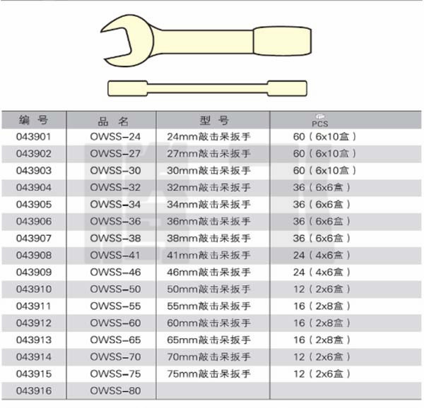 JTECH捷科 OWSS-75 75mm敲击呆扳手非绝缘 (计价单位:把)