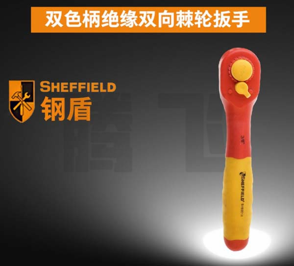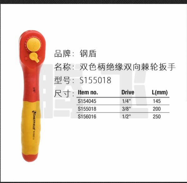 钢盾(SHEFFIELD) S155018 双色柄绝缘双向棘轮扳手200mm