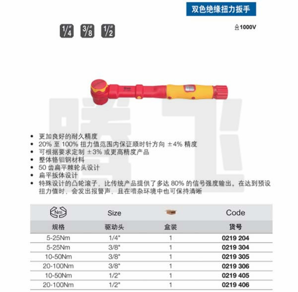BOOHER宝合 219306 双色绝缘扭力扳手20-100Nm,3/8吋