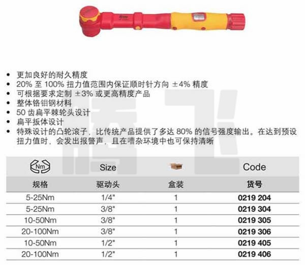 BOOHER宝合 219306 双色绝缘扭力扳手20-100Nm,3/8吋