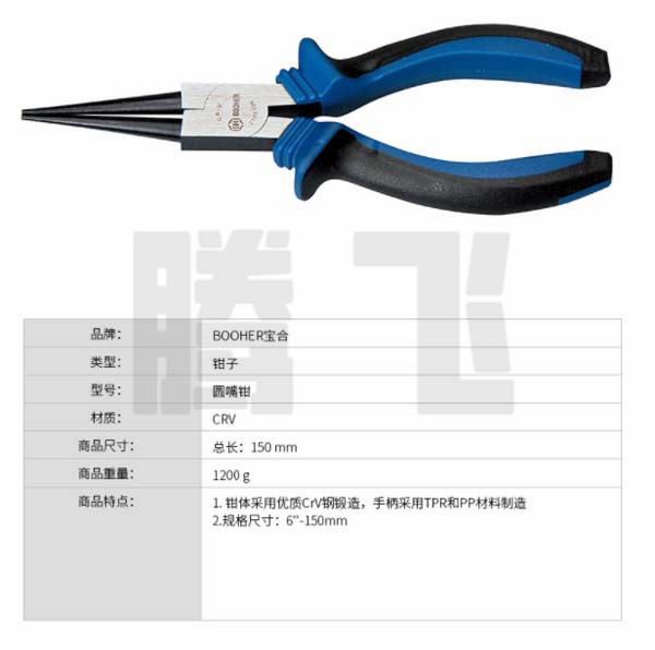 BOOHER宝合 2105506 双色圆嘴钳6吋,150mm
