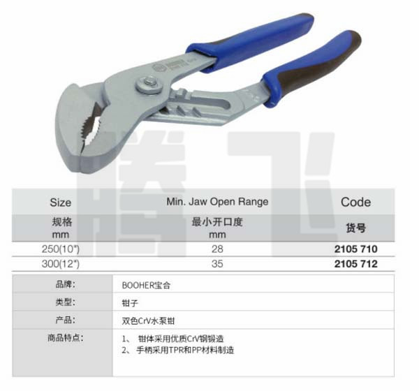 BOOHER宝合 2105712 双色水泵钳12吋,300mm